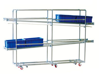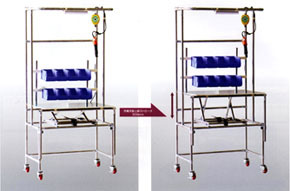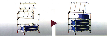 簡単な台車・棚から、動力を使わないカラクリによる省力化が実現できます。