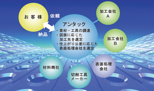 協力工場のネットワークで皆様のニーズにお応えいたします。